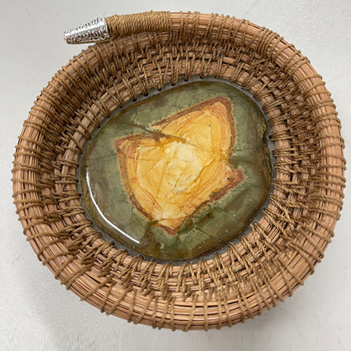 My first one is this one, done in late 2023 when I joined the Quartzsite Roadrunner Gem & Mineral Club in Quartzsite, AZ, to use their stained glass equipment. There was no one to teach it so I ended up in a basket class instead.